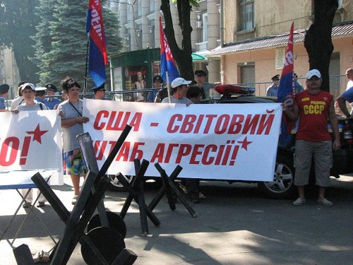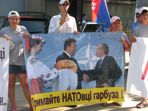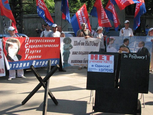 Витренковцы Одессы провели яркую, метафористическую акцию против учений "Си Бриз - 2010" возле Дома офицеров, где американские офицеры и их украинские денщики проводили пресс-конференцию по поводу начала учений.