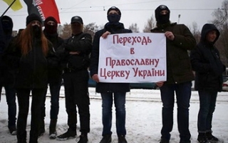 В Житомире активисты запрещенной в России неонацистской организации С-14 провели «акцию устрашения» возле местного кафедрального собора. «Церкви, которые прислуживают стране-агрессору и освящают вражеское оружие будут закрыты. На Украине должна быть украинская церковь!» – заявили они. В различных регионах молодчики действуют по одному и тому же сценарию: по инициативе местных властей и в присутствии полиции срезают замки на входной двери и захватывают храм. Часто с пением гимна Украины. И чаще всего – по ночам. Пришедшие утром на службу прихожане оказываются выброшенными из собственного храма и вынуждены молиться на улице. Так события развивались на Волыни, в Ивано-Франковской и Одесской областях.