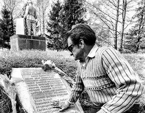 На фото: Альдо; Энрике; Хорхе возле могили Альдо в 1987 году.