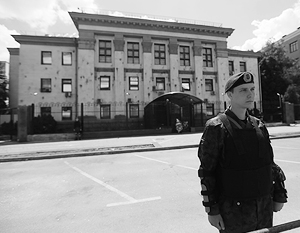 Российское посольство в Киеве устанавливает дополнительные заграждения по всему периметру территории, на которой находится здание дипмиссии.