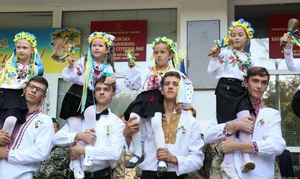 Реформа школы нацелена именно на это – на «воспитание патриотов». Пани министр 1 сентября нарядилась в вышиванку, тем самым подав недвусмысленный сигнал учителям, ученикам и родителям: именно такой она видит школьную одежду. На праздничных линейках по всей стране детвора слушала политинформации о войне, «российской агрессии», «врагах, которые хотят забрать у нас Украину», «территориальной целостности» и о том, как важно быть «патриотами». Школьники пели гимн, разворачивали вышитые рушники, выстраивались в «цепочки единства», танцевали с сине-жёлтыми полотнищами, слушали «киборгов» и «промбергов», воевавших в Донбассе, дарили военным цветы и караваи.