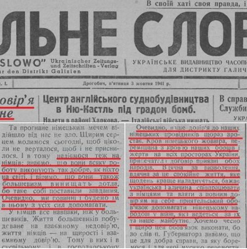 Украинская националистическая газета «Вільне слово» от 3. 10.1941 г. расписывается в любви к гитлеровцам (из архива историка и политолога Владимира Корнилова)