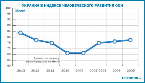Индекс человеческого развития ООН как раз и оценивает такие показатели, как уровень жизни, грамотности, образованности и долголетия. Последние годы в этом вопросе Украине похвастать нечем, но то, как будет меняться положение в этом рейтинге, отчасти будет отображать, насколько власть реально заботится о гражданах, а не о своих узких интересах.