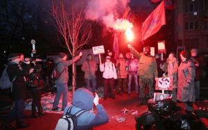 February 13, 2014 in Kiev protest near the U.S. Embassy against foreign interference in the internal affairs of Ukraine.
