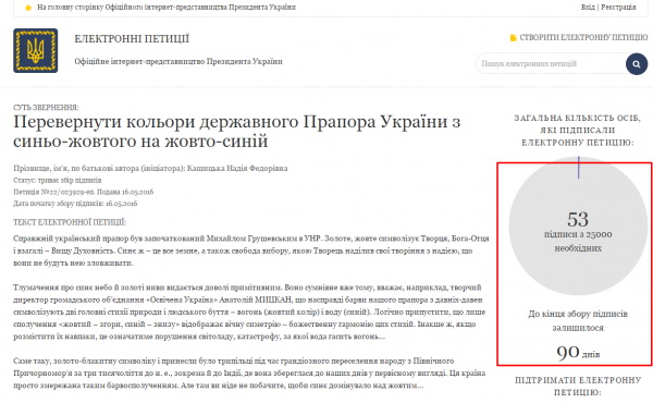 На сайте Президента Украины Петра Порошенко была зарегистрирована петиция с требованием, изменить государственный флаг.