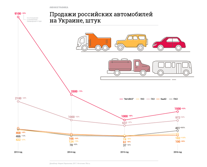 Украина после распада СССР оставалась самым главным экспортным рынком для российских автопроизводителей вплоть до конца 2013 года. Майдан в Киеве и последовавшие за ним перемены в стране серьёзно изменили финансовые возможности да и отношение украинцев к российской технике.