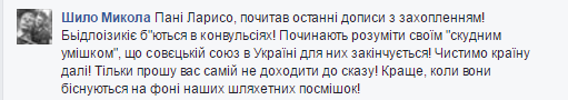 На вечер 30 декабря пост Ницой набрал уже более 2500 лайков, однако в комментариях, которых больше 650, мнения разделились. Часть пользователей говорят, что ее поступок - это истеричная выходка и никак не поможет распространению украинского языка. А другие пользователи обвиняют критиков Ницой в том, что они "ольгинские тролли" и посылают их в Московию.