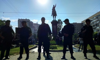 Активисты отказались от планов снести эту статую в День независимости Украины, поскольку представители Администрации города пообещали самостоятельно демонтировать ее осенью.