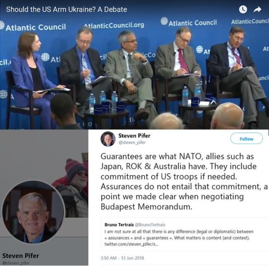 "Гарантии - это то, что имеют НАТО, союзники США, такие как Южная Корея и Австралия. Они включают обязательства использовать американские вооруженные силы в случае необходимости. Заверения не влекут за собой таких обязательств, и мы четко заявили об этом в ходе переговоров по Будапештскому меморандуму", - разъяснил через «Твиттер» бывший посол США на Украине Стивен Пайфер.