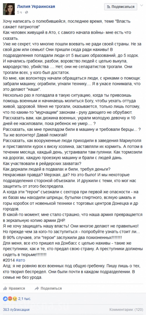 «Как человеку, живущему в "АТО" с самого начала войны, мне есть, что сказать.