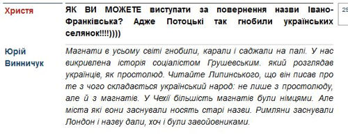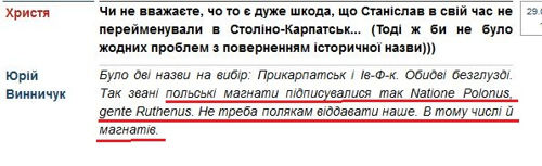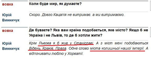 Интересно, что отвечая на вопрос читателя "Фиртки", в каких городах ему довелось жить, "европеец" и любитель аристократов Винничук честно признался, что кроме Львова и Ивана-Франковска он больше нигде не жил.