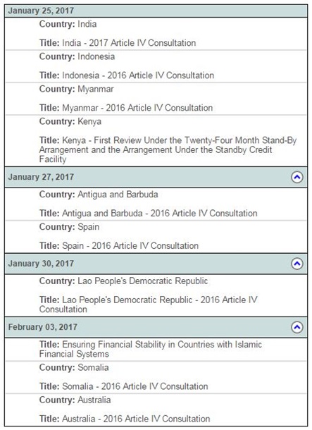 Согласно документу, 25 января будет рассмотрено сотрудничество фонда с Индией, Индонезией, Мьянмой и Кенией. 27 января – с Антигуа и Барбуда, а также с Испанией. 30 января в повестке дня только одна страна – Лаос, а 3 февраля – сотрудничество с Сомали и Австралией.