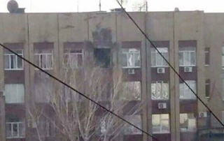 Как утверждают очевидцы, был обстрелян штаб "корпуса" ДНР на улице Николенко. В результате нападения один из снарядов попал в четвертый этаж здания.