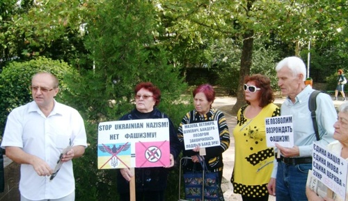 14 октября в Ялте местные антифашисты проводили акцию, направленную против возрождающегося на Украине фашизма. Местом сбора был избран сквер возле бывшего цирка, где в 2007 году при мэре Брайко по просьбе и при финансовой поддержке канадской диаспоры, по указанию секретариата президента Ющенко была установлена бронзовая скульптура человека, похожего (по мнению создателей) на украинского поэта Шевченко. Тогда в 2007 году открытие памятника чуть не превратилось в националистический шабаш, и, благодаря активистам местного антифашистского комитета, пришедшим с плакатами: "Шевченко не был украинским националистом!", "Шевченко служил в русской армии – Шухевич служил в немецкой армии!", "Шевченко, Пушкин, Лермонтов, Есенин, Маяковский... - жемчужины общерусской культуры!", "Наш руський Крим Шевченка поважає – Бандеру i Шухевича ніколи не признає", "Зробить подарунок України – оставьте Крым в покое!", "Крымчан украинизировать невозможно!" - националистический запал быстро угас [1] (фото 1)...