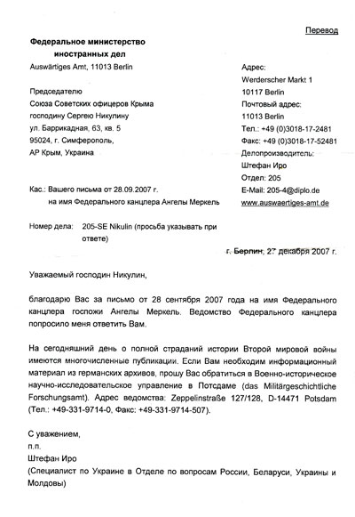 Также, собравшиеся отметили, что Шухевич задним числом выбрал красивую дату 14 октября (Покров Пресвятой Богородицы). Потому что реально в октябре 1942 года Роман Шухевич служил в чине капитана в 201-м батальоне охранной полиции СД (Schutzmannschaft Battailon 201) в Белоруссии. Одним из последних сообщений о действиях батальона в Белоруссии является отчёт о бое 3 ноября 1942 в 20 км от Лепеля. И только после сокрушительного поражения немцев под Сталинградом, когда ситуация стала меняться не в пользу захватчиков, фашистам понадобились ОУНовские головорезы в новом качестве – для борьбы с партизанами на Украине под бандеровскими знамёнами. Кроме того, на официальный запрос Союза Советских офицеров Крыма в Бундесархив о потерях Вермахта, нанесённых ему подпольными группами УПА в Западной Украине, пришёл ответ про незначительные атаки тыловых учреждений, пленение и убийство нескольких немецких солдат, хотя в большинстве имевшихся случаев их отпускали (фото 10, 11) [5,6]. Так что, никакой войны с гитлеровцами УПА не вела, а лишь изредка занималась грабежом тыловых учреждений...