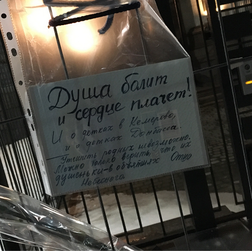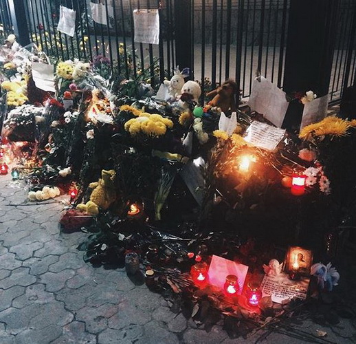 В КИЕВЕ К ПОСОЛЬСТВУ РФ НЕСУТ ЦВЕТЫ И ИГРУШКИ В ПАМЯТЬ О ПОГИБШИХ В КЕМЕРОВО