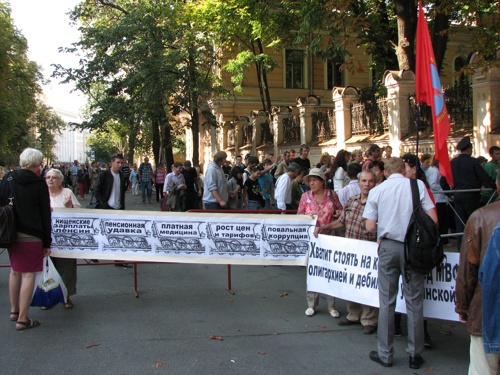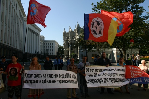 "20 лет независимости Украины - это 20 лет беспредела власти, концлагерь для трудового народа", - под таким лозунгом в Киеве 23 августа 2011 г., в канун 20-летия так называемой "независимости", представители Киевской партийной организации ПСПУ, Партии "Киевская Русь" и "Конфедерации труда Украины", не смотря на запугивание судебным процессом, вышли на акцию протеста с тем, чтобы выразить своё возмущение и презрение к лживой власти, которая на протяжении 20 лет обманывает и обворовывает свой народ.