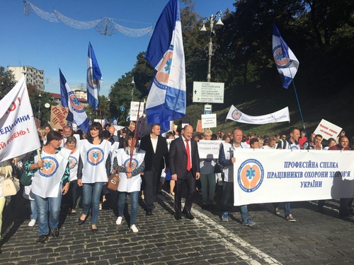 В Киеве 19 сентября 2017 прошел митинг работников медицинской сферы против принятой Верховной Радой в первом чтении медицинской реформы. Об этом сообщает корреспондент "Страны".