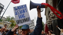 В конце августа активисты уже проводили массовый митинг "Валютный бунт" у здания Национального банка Украины в Киеве и возле региональных отделений НБУ. Заемщики требовали прекратить спекуляции на валютном рынке, из-за которых падает курс гривны, что делает невозможным выполнение ими кредитных обязательств перед банками.