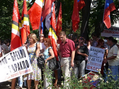 От Блока Витренко на митинге выступили депутат Верховного Совета Крыма Виктор Попов и председатель Крымского республиканского совета Партии "Киевская Русь" Надежда Полякова. Они выразили полную поддержку преподавательскому составу и родительскому комитету артековской школы, вставших на защиту интересов детей.