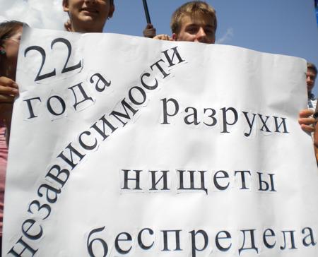 "22 года независимости, нищеты, разрухи и беспредела!", с такими плакатами в руках в акции приняли участие активисты Крымской молодежной организации "Прорыв".