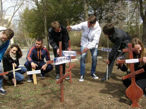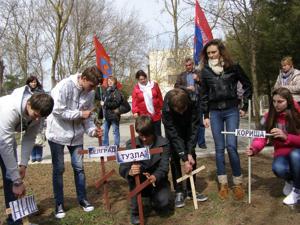 В Крыму ежегодно в последнее воскресенье марта Прогрессивная социалистическая партия Украины и Молодежная организация "Прорыв" разбивают импровизированное кладбище в память о разбомбленных мирных городах славянских братьев в Югославии.
