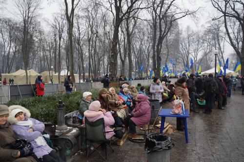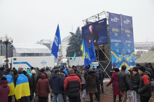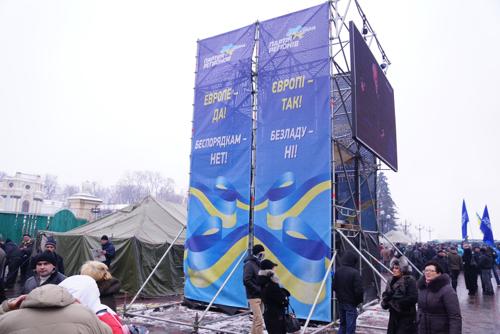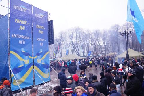 В Мариинском парке Партия регионов организовала Антимайдан. Я взял фотоаппарат и прошёл оба эти Майдана. Пытался найти отличия. И там, и там палатки, и там, и там костры, и там, и там сцена для выступающих. Поразительно, что с двух агитационных трибун шла агитация за ... евроинтеграцию. Только на Антимайдане кричали: "В Европу с Виктором Януковичем!" но не сейчас, а чуть позже. Здесь откровенно были и плохие ораторы, и совершенно слабые аргументы. Выделялся криком и тошнотворным лебезением перед президентом некий Олег Калашников. Ни одного выступления за Таможенный союз, за союзное государство с Россией и Белоруссией. Никто не поднимал тему нашего единого прошлого с Россией, не призывал к единству Русской православной церкви. Никто не объяснял потерю государственного и народного суверенитета в случае подписания Соглашения, нарушений прав русскоязычного, русско–культурного населения Украины. Никто не выступал за русский язык, как государственный. Показали единственно более менее достойно видеовыступление Азарова. Но оно касалось только катастрофы в экономике. И всё! Но поскольку на Антимайдане регионалов были в основном жители Юго-Востока Украины, то шла обработка их сознания о необходимости вступления в Евросоюз. Предательски, печально, но факт.