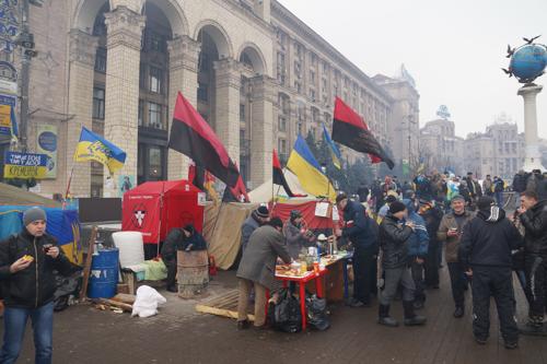 На Евромайдане в плане агитации всё по-другому. Приехали заряженные неонацизмом галичане и гнули свои речёвки, отработанные и оглашаемые уже 100 лет. Они "борцы за независимость и за волю". Никто из их выступающих не раскрыл сути Соглашения об ассоциации. Никто не говорил о потере суверенитета, катастрофе экономики. Только речёвки, только причитания, что якобы они борются за независимость Украины и против бандитской власти. Нагнетается до сумасшествия антирусская, антироссийская позиция. Полная параллель с УНР 1918–го года, когда Центральная Рада отдала Украину под оккупацию немцам под лозунгом борьбы за независимость, и Директории 1920–го года, когда под речёвки о независимости петлюровцы полякам отдали Галичину и 11 млн украинцев. Потом ОУН под вывеской борьбы за независимость клялась на верность А.Гитлеру, направляла добровольцев в войска СС. Тогда, крича о независимости, националисты покорно приняли гитлеровский оккупационный режим с генерал-губернаторством и Рейхскомиссариатом, отправляли в Германию на рабский труд миллионы наших граждан, сотнями тысяч вырезали и зверски убивали поляков, русских, украинцев, евреев, в колодцы бросали детей, уничтожали борющихся с гитлеровцами подпольщиков, партизан, красноармейцев. Борьбой за независимость оправдывали националисты - гитлеровские псы, службу в войсках вермахта, полицейских карательных батальонах и частях СС. Сейчас, на Евромайдане, уже современные коллаборанты и одурманенные их враньем о борьбе за независимую Украину доверчивые украинцы требуют продать Украину в колониальное рабство Евросоюзу.