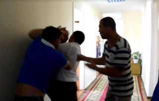 Видео драки, которая произошла в коридоре облсовета, опубликовали местные СМИ; ей предшествовал спор о том, где школьные автобусы, обещанные еще в середине мая.