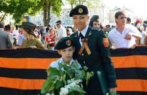 Наблюдатель мониторинговой миссии ОБСЕ на Донбассе Ольга Скриповская одела георгиевскую ленточку во время празднования 9 мая в молдавском городе Бельцы в 2010 году. В это время в Украине эта символика тоже была общепризнанной.
