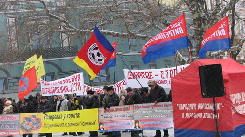 Протестующие вышли с лозунгами " Мы не рабы", " Нет грабительским тарифам ЖКХ",