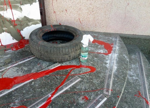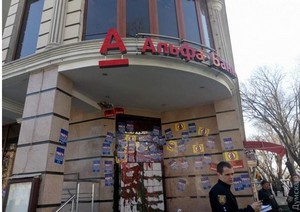 А в Луцке в ночь на 29 марта, неизвестные разбили окна в отделениях Альфа-банка и Сбербанка.