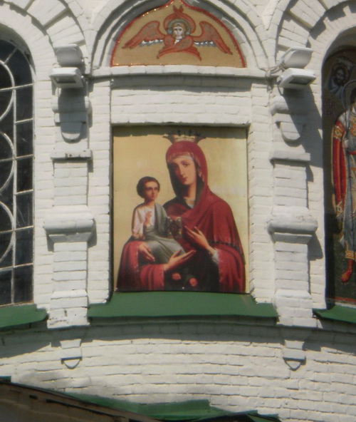 Российский герб закрашен – вместо него икона Богородицы