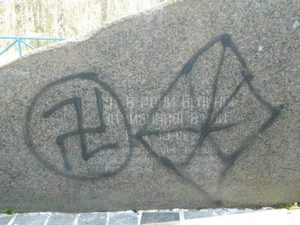В Костополе Ровенской области на памятнике двум тысячам расстрелянных немецкими оккупантами и украинскими коллаборационистами евреев была нарисована свастика.