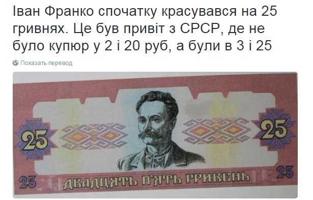 В планах у разработчиков украинской валюты было введение купюры номиналом в 25 гривен по аналогии с Советским Союзом, на которой должен был быть изображен украинский писатель Иван Франко.