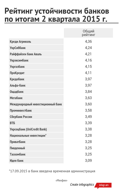 "Финансы и кредит". 17 сентября НБУ отнес банк, подконтрольный бизнесмену и народному депутату Константину Жеваго, к категории неплатежеспособных, теперь Фонд гарантирования вкладов введет в него временную администрацию. По размеру активов на 1 июля 2015 г. банк занимал 10-е место (38,88 млрд грн). Его обязательства перед физлицами на эту дату были равны 16,98 млрд грн, в том числе в валюте – 11,61 млрд грн.
