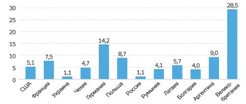 Цена 1 га сельскохозяйственной земли на Украине и в других странах, тыс. долл.