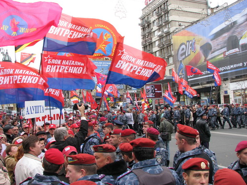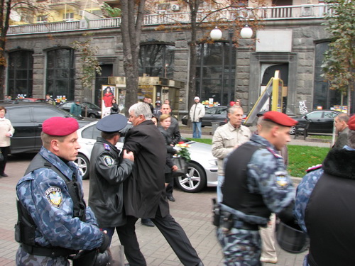 На требование заместителя Председателя ПСПУ Владимира Марченко к представителям МВД предъявить какие-либо документы, ограничивающие конституционные права граждан на проведение мирной акции, документов не было предоставлено. Вскоре колонна двинулась по направлению к Бессарабской площади, где сотрудники МВД применили силу к мирным гражданам Украины, собравшимся под флагами ПСПУ и партии "Киевская Русь" и напротив кинотеатра "Орбита" колонна вновь была заблокирована.
