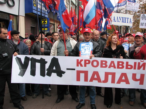 14 октября, в день, когда неонацистские выродки заявили о намерении праздновать день образования УПА, около 12 часов началась мирная конституционная акция ПСПУ под лозунгом "Подними звезду, победи фашизм!".