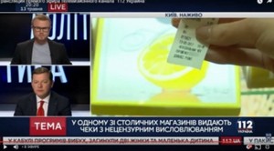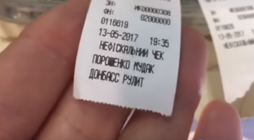 В киевском магазине вручают чеки "Порошенко - м*дак. Донбасс рулит"