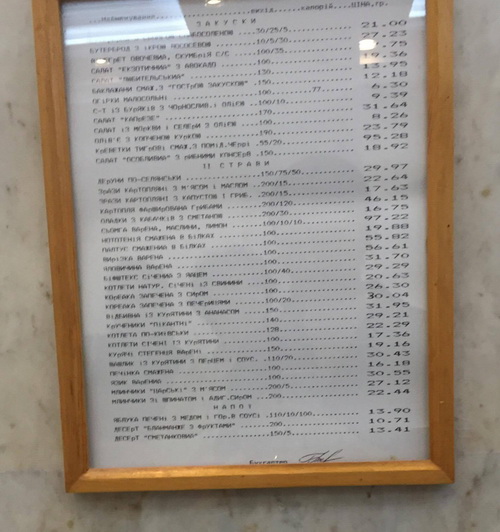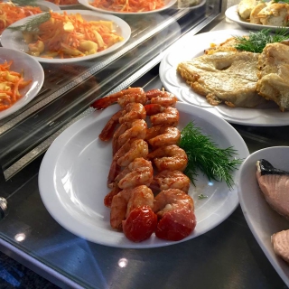 По сравнению с апрелем блюда в буфете подешевели на 5-10%. Среди экзотических блюд можно взять салат "Экзотический" с авокадо за 19,36 грн, бутерброды с лососевой икрой за 27, 23 грн и десерт "Бламанже с фруктами" за 10,71 грн.