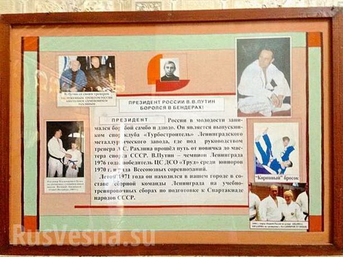 Интересно, что российскому президенту Владимиру Путину в школе борьбы в Бендерах посвящен отдельный стенд, который напоминает, что он приезжал на сборы в город в составе сборной команды Ленинграда в 1971 году.