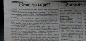 В местной газете города Чертков в Тернопольской области вышла статья главного редактора Марьяны Полянской о национальности руководства Украины. Об этом на своей странице в Facebook сообщает директор Украинского еврейского комитета Эдуард Долинский.