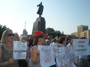 В Харькове на площади Свободы состоялся митинг "Против гражданской войны. За Донбасс!", организованный женским движением Харькова. Акцию поддержали активисты "Русское Вече", Союза Советских офицеров, "Трудовой Харьковщины", обкома КПУ и других организаций антифашистской направленности. Об этом сообщил Геннадий Макаров, глава Харьковского объединения "За культурно-языковое равноправие", председатель координационного совета русских организаций Востока Украины "Русское Вече", принявший участие в акции со своими активистами.