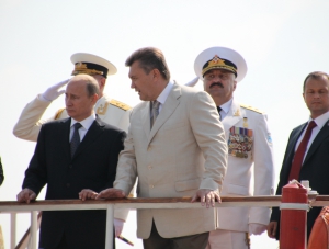 Встреча Путина с Януковичем продлилась недолго - около 15 минут. Затем президент России посетил заседание за "круглым столом" "Православно-славянские ценности - основа цивилизационного выбора Украины", организованное лидером общественного движения "Украинский выбор" Виктором Медведчуком.