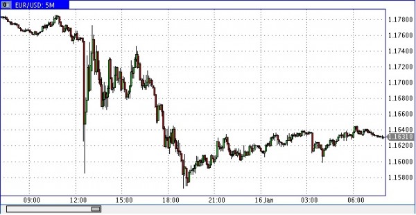 Как видим, совершенно синхронно с обрушением доллара по отношению к швейцарскому франку на форексе произошло еще одно событие. Курс доллара по отношению к евро вырос с 1.175 до 1.16 Существенное расхождение в процентах изменения курсов никого не должен обманывать. Рынок валютной пары доллар-евро главный рынок форекса. На нем постоянно вращаются совершенно несоизмеримые суммы в десятки и даже сотни миллиардов. Техническая причина провала евро все та же. Сработка стопов, традиционно располагавшихся в диапазоне 1.179-1.175. Наиболее напрашивающимся выводом является то, что Игрок, обрушивший евро, тут же продал купленные доллары против швейцарского франка. Но есть нюанс. Как видно на втором графике евро почти моментально отыграл потери и вернулся к уровню, с которого провалился. Да, позже евро снова ослаб, Но так происходит практически всегда. Уверен, что и 0.74 франка за доллар мы еще увидим в не самой отдаленной перспективе. Но сейчас важно другое. Сняв свою прибыль, инициатор падения евро почти не изменил рынок. Следовательно вероятнее другое. Доллар против франка рушил не тот. кто обваливал евро. И сама операция по обвалу доллара была местью за провал евро. И это соображение подводит нас к третьему и самому важному уровню смысла произошедшего.