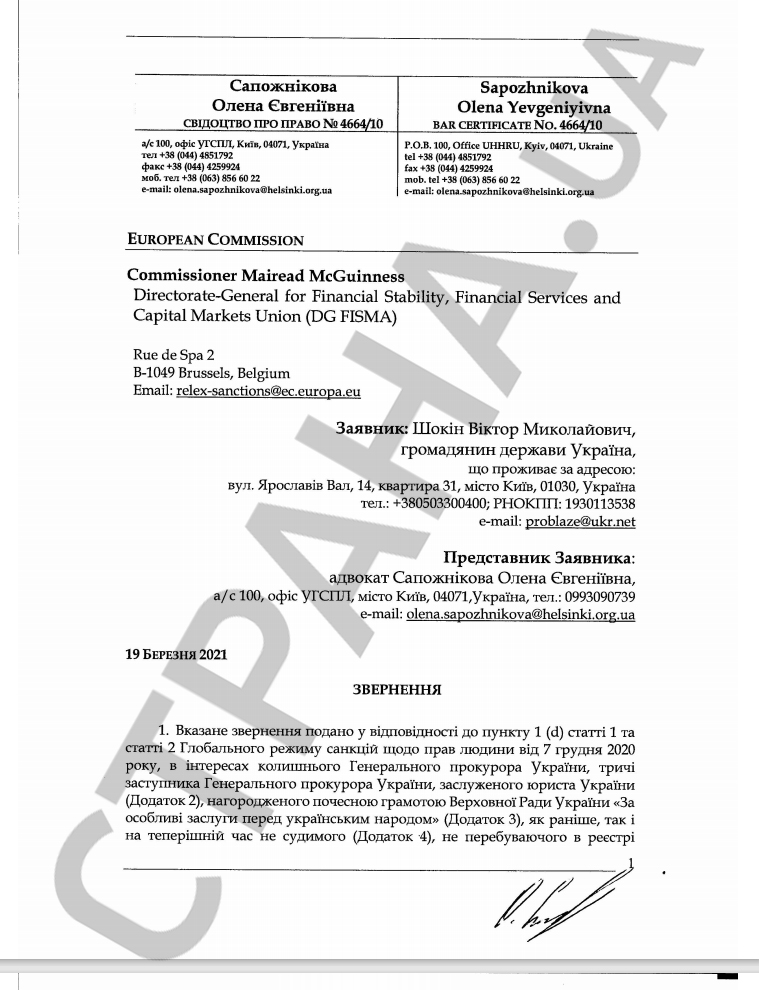 В конце прошлого года Еврокомиссия приняла решение, согласно которому любое юридическое или физическое лицо из любой страны мира может обжаловать в ЕК нарушение каких-либо своих прав. Первым в Украине, кто такое заявление подал, оказался бывший генпрокурор Виктор Шокин (вернее, адвокат от его имени; полный текст документа приводится в конце текста).