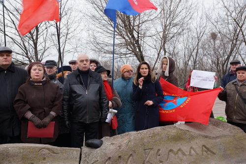 На акции выступили народные депутаты Украины Н.Витренко (ПСПУ), Г.Буйко (Антифашистский комитет Украины), Е.Мазур (ЗУБР), В.Марченко (ВПО «Конфедерация труда Украины»), а также В.Буткалюк (Рабочая партия Украины) и В.Лукияник (Союз православных братств Украины).
