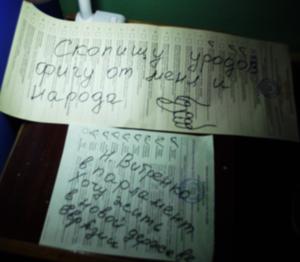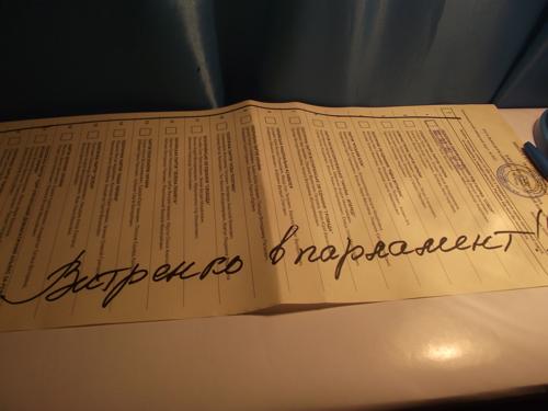 Испытывая чувства омерзения, шли витренковцы на избирательные участки 28 октября. Прогрессивная социалистическая партия Украины не участвует в этом шоу под названием "выборы в Верховную Раду", но как избиратели, партийцы воспользовались своим правом выразить отношение к происходящему процессу. Так как из бюллетеня предусмотрительно была изъята строка "против всех", то чтобы не отдать ни одного голоса за партии и кандидатов, нужно просто испортить бюллетень. Многие избиратели так и поступали. И в Донецке, и в Дзержинске, и многих других городах избиратели не просто вычеркнули всех, но и сопроводили бюллетень "приветом" и пожеланиями.