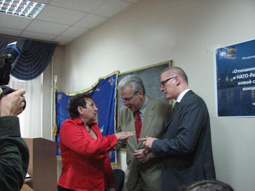 То, что это именно пропаганда НАТО подтверждает литература, предлагаемая участникам конференции – учебные пособия для школьников и студентов. Никаких документов представлено нам не было. Что дало право участников антиНАТОвского выступления не позволить не только провести конференцию, но даже её открыть. С пеной у рта выступали местные и приехавшие с других городов Украины НАТОвские холуи против доводов и аргументов витренковцев. Приехавшие представители стран альянса – Чехии и Германии молча созерцали все происходящее с неприязнью.